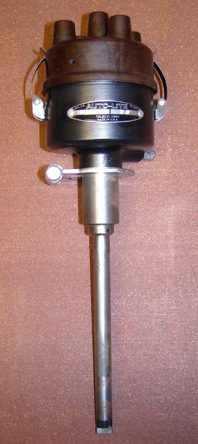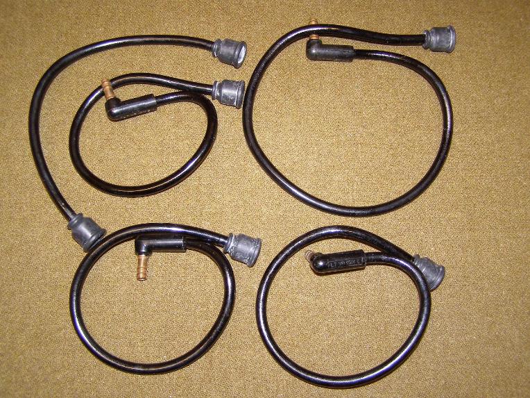 | Distributor, above left and top photo. The Auto-Lite Distributor Model IGC-4705 was used from the start of production through late October/November 1944. The date code on the nomenclature plate 9 W represents September 1942. Ignition Wires, above right photo. The Ignition Wires were made of black lacquered 7mm wire with a right-angle ignition resistor terminal. |