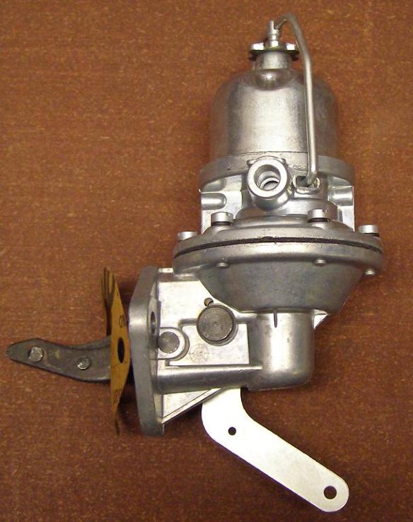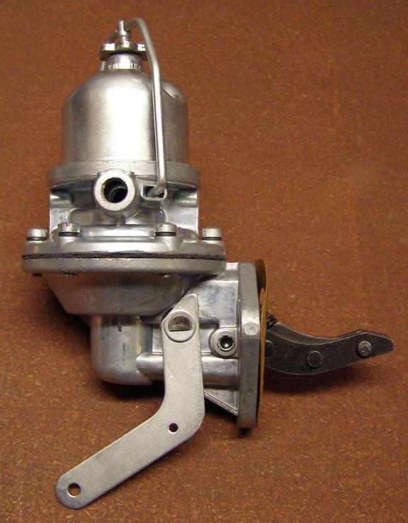 | Reproduction Fuel Pump, above left and right photo. The fuel pump used throughout wartime production had a priming lever permanently attached to the side of the pump body and a metal pump bowl attached to the bottom. |