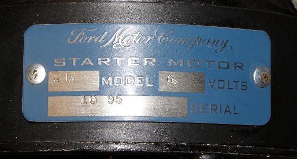 | Starter, above left and top photo. The GPW was supplied with a Ford manufactured Starter. The Ford manufactured motors are almost identical to the Auto-Lite version with the exception of the front casting which has the part number GPW 11131 cast into it (left photo). The nomenclature plate is stamped with GPW MODEL 6 VOLTS and the serial number of the starter (not the vehicle serial number). |