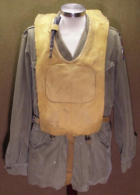 | M-1943 Field Jacket and B-4 Life Preserver, above photos. The uniform pictured above is a depiction of what may have been worn by Flight Officer Noel Clarence McCann during Operation Market Garden. |