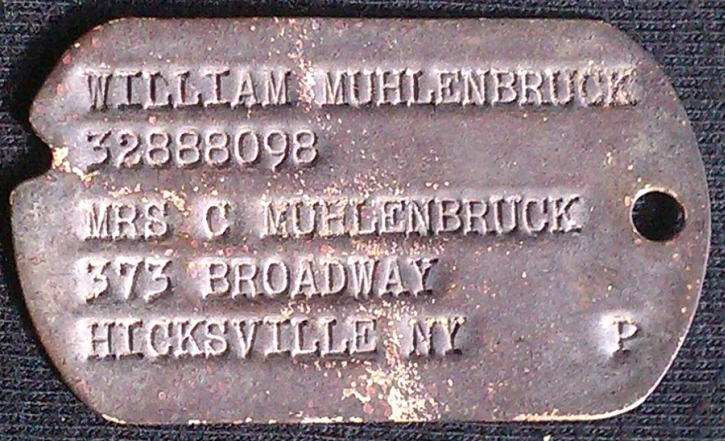 | SERVICE HISTORY OF WILLIAM H. MUHLENBRUCK William H. Muhlenbruck was born on October 7th 1924 and enlisted in the United States Army on April 12th 1943 in New York City, New York. His identification tag or "dog tag" lists his next of kin as his mother Catherine C. Muhlenbruck, 373 Broadway, Hicksville, New York. His religious preference is listed at Protestant. On October 13th, 1944 B-24J 42-78647 was piloted by Captain Kenneth R. Elliott and took off with her crew from Castelluccio, Italy. This aircraft was assigned to the 724th Bomb Squadron (H), 451st Bomb Group (H), 15th Air Force. The target was Bombing Mission 134: Ostereichische Motor Works, Vienna Austria. Heavy flak shot down eight bombers on October 13th, 1944 to include B-24J 42-78647. Staff Sergeant William H. Muhlenbruck was the right waist gunner on B-24J 42-78647. S/Sgt Muhlenbruck would be taken prisoner by the German Army and was held as a Prisoner of War at Stalag Luft IV until he was liberated on May 26th 1945. William H. Muhlenbruck survived World War Two and would later marry Virginia Muhlenbruck. William H. Muhlenbruck died on March 5th 1999 and is buried with his wife in the Calverton National Cemetery, Suffolk County, New York, Section 19 Site 608 |