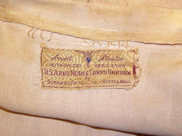 | Nurses working overseas cover, left photo. Working Uniform nomenclature tag, right photo. This tag is marked: Smart Streeter AUTHORIZED REGULATION U.S. ARMY NURSE CORPS UNIFORM by BERNARD APPLE, INC. - BOSTON, MASS. |