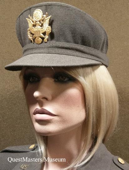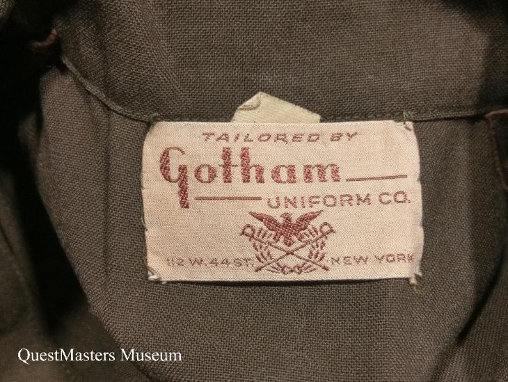 | The olive drab service cap, above left, could be worn with seersucker uniform or the olive-drab off-duty dress. This off-duty dress was tailored by Gotham Uniform Company, 112 W. 44th St., New York City, New York. |
