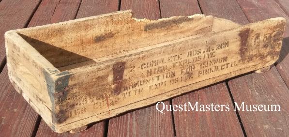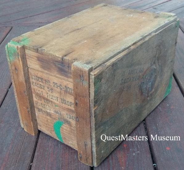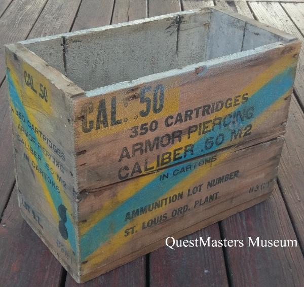 | After many requests from museums, the movie industry, re-enactors, WWII vehicle owners and collectors, QuestMasters Museum now offers restored original WWII crates! The crates, shown below, are genuine WWII factory production, with original hardware, that have been restored by QuestMasters Museum. Currently the WWII M-1917 Packing Box, which was used to ship and issue .30 caliber rifle and machine-gun ammunition, as well as .50 caliber machine-gun ammunition, and the M-3 Packing Box, for .45 caliber ammunition, are the only original crates that are available. Each crate is a work of art that matches original factory paint colors, markings, production lot numbers to specific years, and specific to the arsenal or ordnance plant that produced them. Restored crates are shown next to the original crate, used to create them, in the QuestMasters Museum reference library. For availability and prices email: questmasters@hotmail.com |