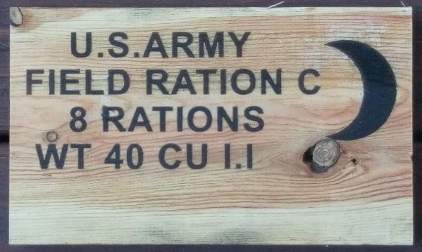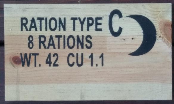 | C Ration Crate, C135 Fully assembled for display: Early WWII, Thrift Packing Company, Dallas Texas $65 |