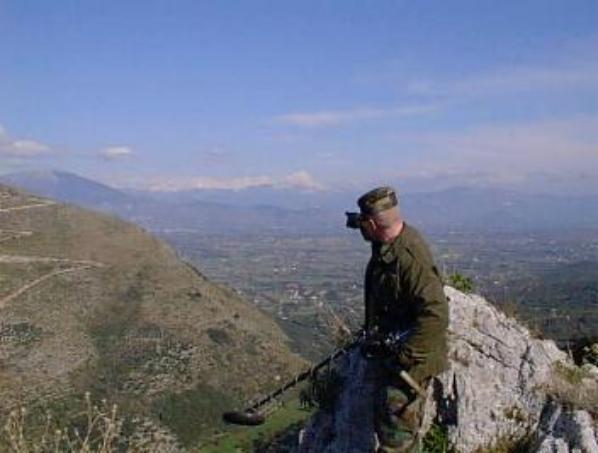 Between 1997 and 1999, QuestMasters conducted WWII archaeological work in the town of Esperia, Italy. Esperia, Italy lies on the western flank of Monte Cassino between Naples and Rome. This area was the focal point of the French Expeditionary Corps (F.E.C.) during the Allied drive toward Monte Cassino during late 1943 through early 1944. The F.E.C. was primarily comprised of Moroccan soldiers. These Moroccan soldiers were specifically chosen for operations in Esperia for their mountain fighting ability. The Moroccan soldiers fought swiftly and surgically in this campaign. Goumiers were colonial irregular troops forming the Goums Marocains, which were approximately company-sized units rather loosely grouped in Tabors (battalions) and Groupes (regiments). Three of the units: the 1st, 3rd and 4th Groupements de Tabors, served in the F.E.C. along with the four regular divisions: the 1st Free French Division, the 2nd Moroccan Infantry Division, the 3rd Algerian Infantry Division and the 4th Moroccan Mountain Division. The Goums Marocains were commanded by General Augustin Guillaume. Regular Moroccan troops (tirailleurs marocains) also served in Italy but under tighter discipline and with a higher proportion of officers than the irregular goumiers. On May 14, 1944, the Goumiers travelled over seemingly impassable terrain in the Aurunci Mountains, outflanked the German defence in the adjacent Liri valley, materially assisting the British XIII Corps of the British Eighth Army, to break the "Gustav Line" and advance to the next Wehrmacht prepared defensive position, the "Hitler Line". |